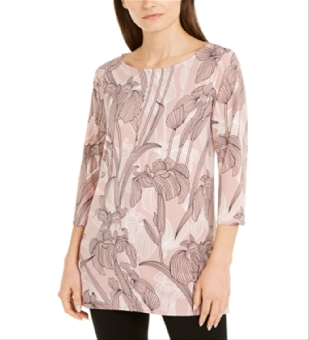 Alfani Women's Printed Mesh Tunic Pink Size Large