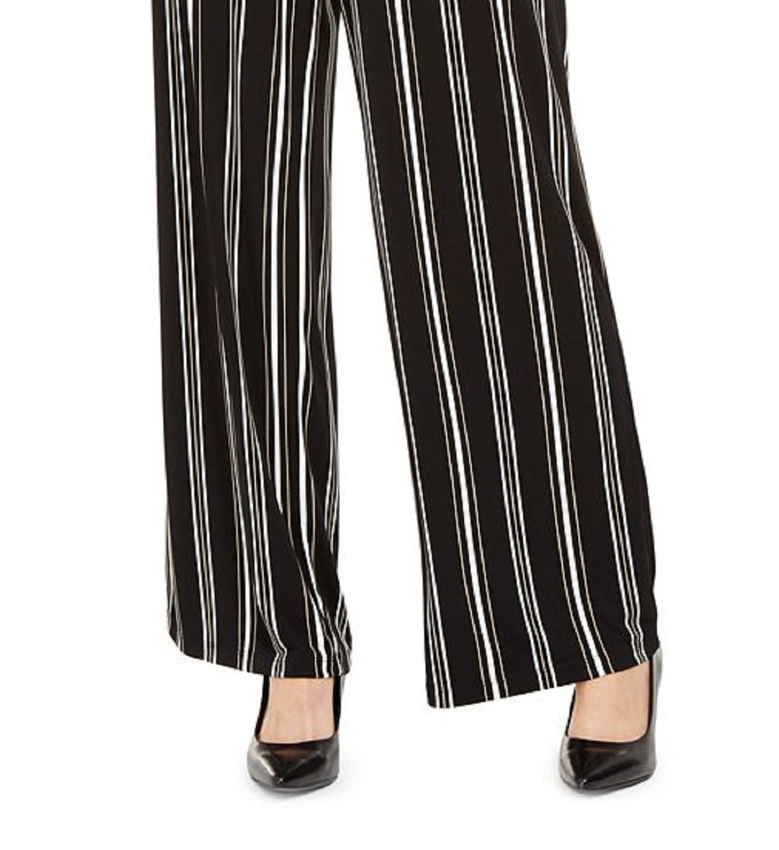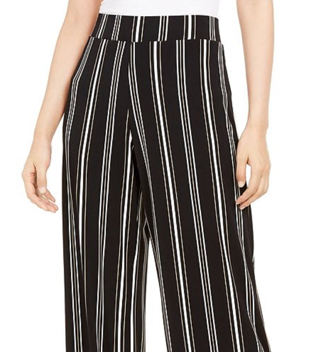 Dramatically designed with a wide-leg silhouette a chic striped pattern| this pair of petite pants from Alfani features pull-on styling for effortless dressing.| Approx. inseam; 28| Front rise approx. 10-1/2; back rise approx. 14| Designed to fit and flatter 5'4 and under frame| Pull-on styling|