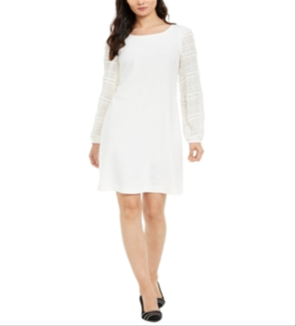 Alfani Women's Textured Sleeve Shift Dress White Size XX-Large