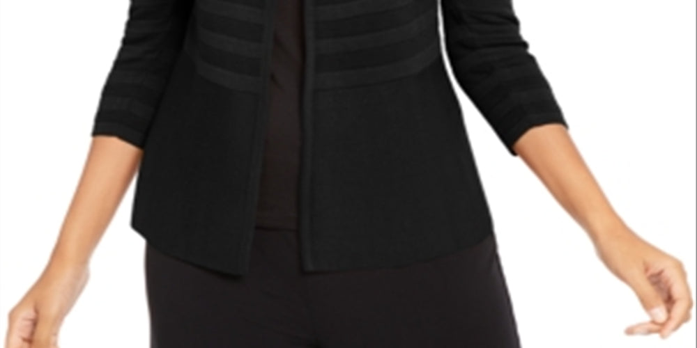 Alfani Women's Textured Stripe Open Front Cardigan Black Size Large
