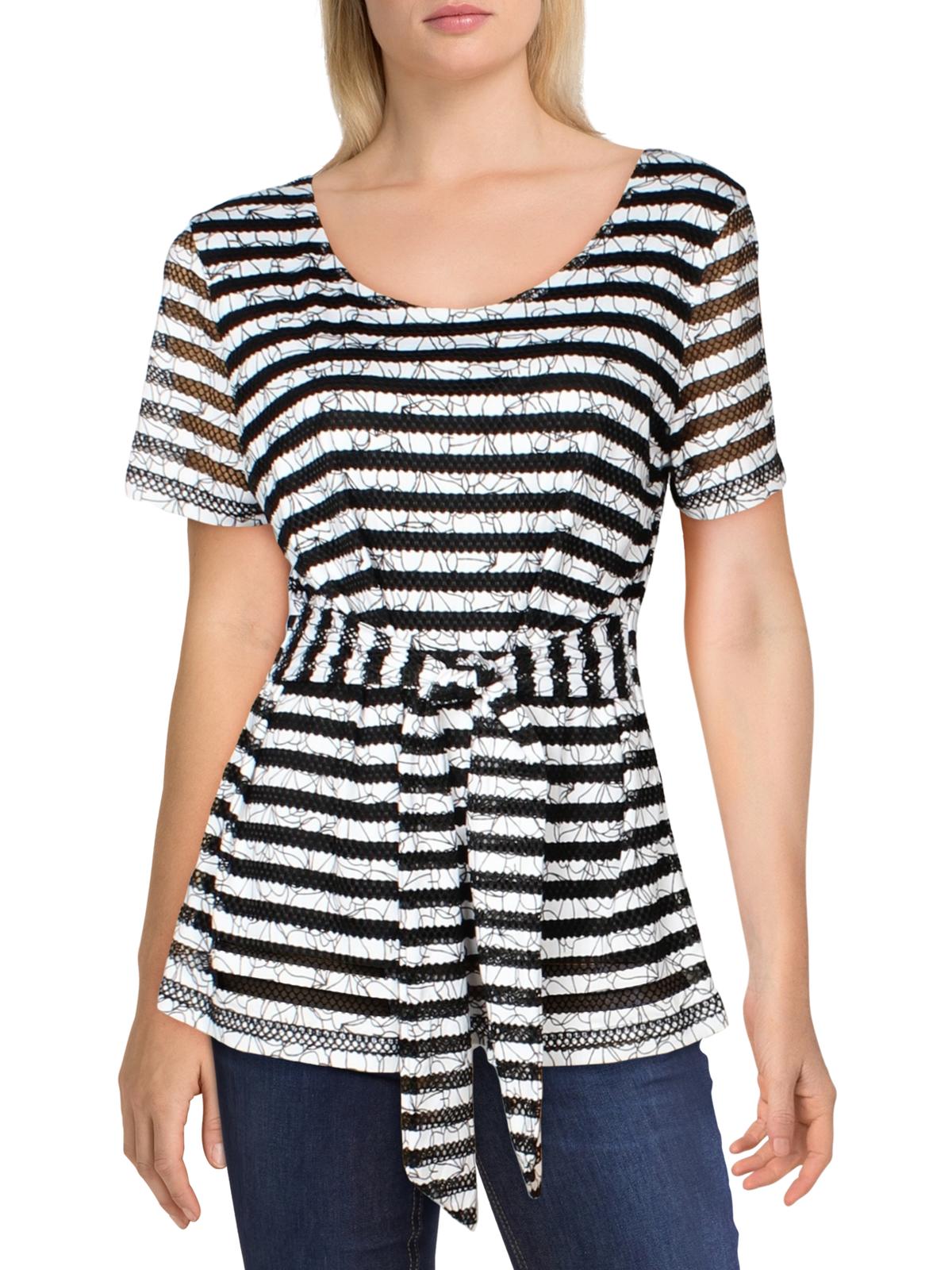 Alfani Women's Textured Striped Tie Waist Top Black Size Medium