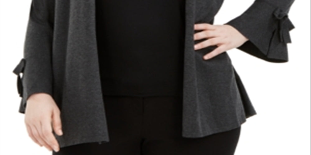 Alfani Women's Tie Sleeve Cardigan Grey Size XXXL