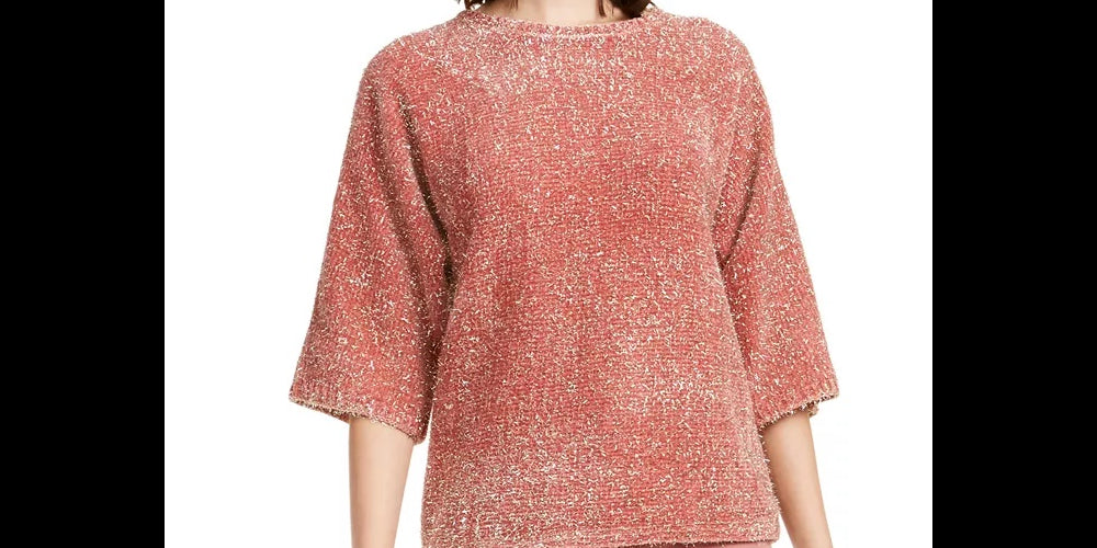 Alfani Women's Tinsel Square Sleeve Sweater Pink Size Petite L