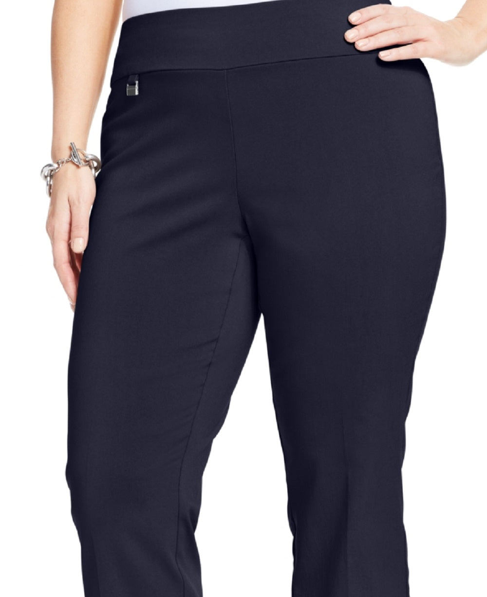 For effortless| polished warm-weather style| Alfani's plus size capri pants| featuring pull-on styling and tummy control offer comfort| style and the perfect fit