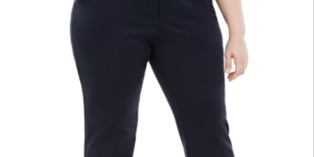 Alfani Women's Tummy Control Faux Leather Trim Trousers Blue Size Petite Small