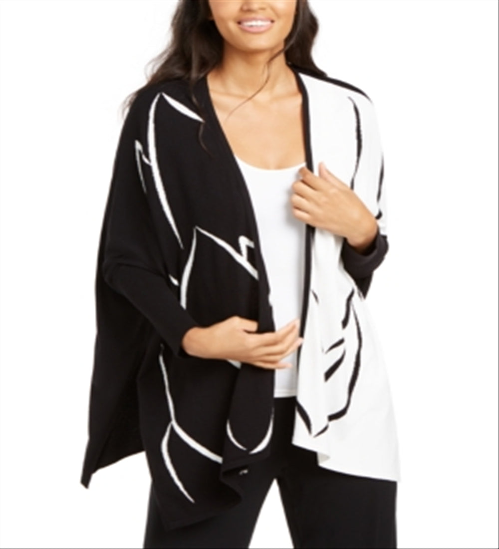 Alfani Women's Two Tone Open Front Poncho Cardigan Black Size XX-Large