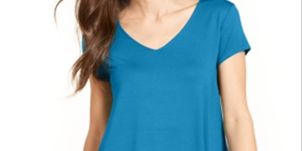 Alfani Women's V Neck Knit T-Shirt Blue Size Large
