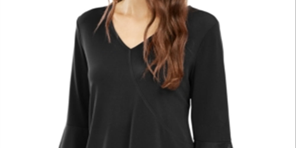 Alfani Women's V Neck Mesh Trim Top Black Size Large