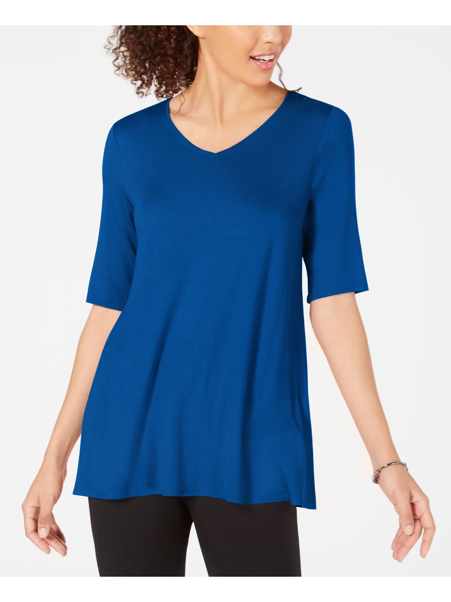 Alfani Women's V-Neck Swing Tunic Top Blue Size Small
