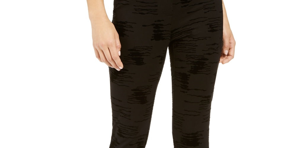 Approx. inseam: 29-1/2"|Front rise: approx. 9-1/4"; back rise: approx. 16-1/8"; skinny leg|Front zip closure|Velvet flocked print throughout|2 back faux welt pockets