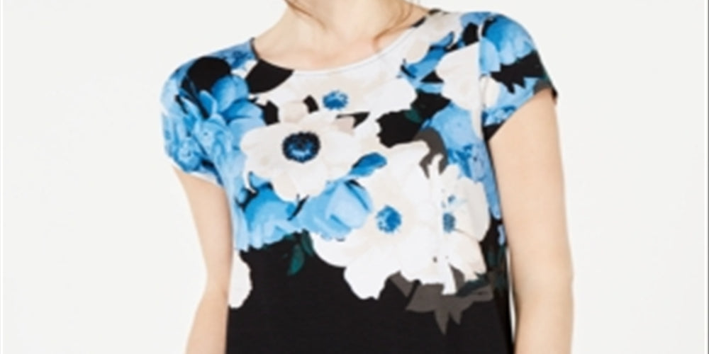 Alfani Women's Wave Print Top Wreath Blue Size Petite