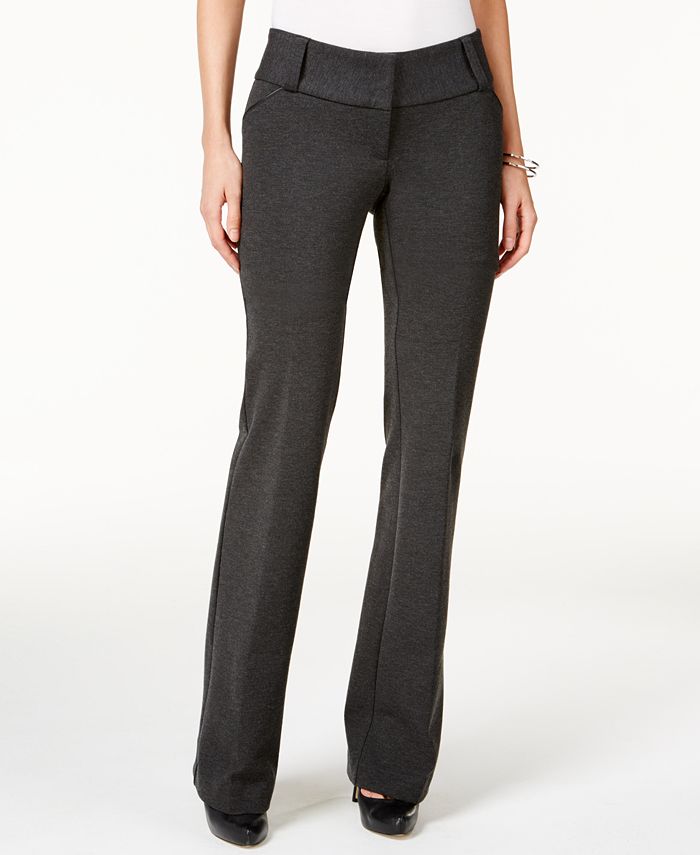Chic for a day of work| these trousers from Alfani pair with your favorite blouses and blazers for a great look dawn till dusk.| Mid rise; waistband sits below natural waist| Approximate inseam; Reg 33; Short 31| Straight fit through hips and thighs| Trouser leg| Front zipper fly with clasp closure; belt loops