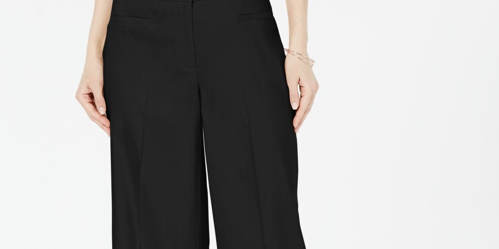 Alfani Women's Wide Leg Linen Pants Black Size 14 Petite