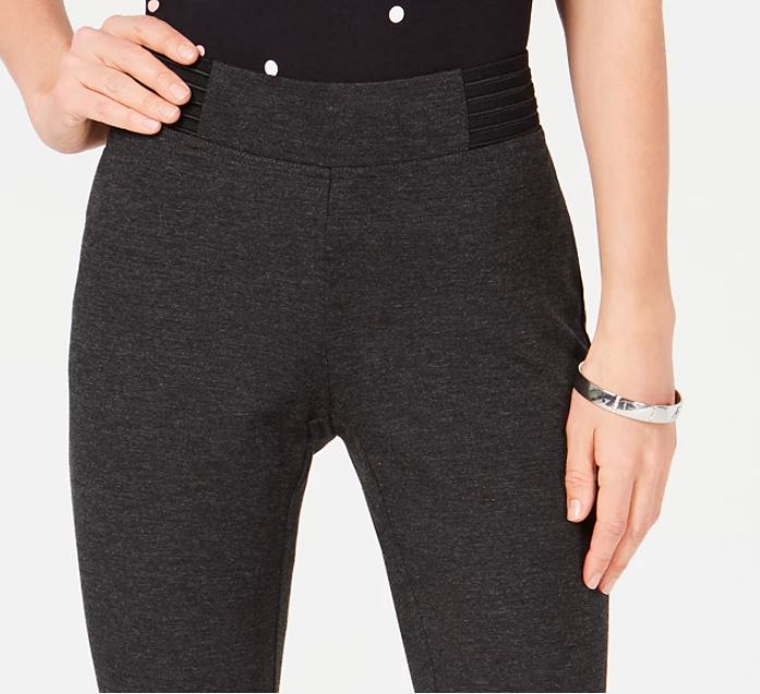 Alfani Women's Wide Waistband Exposed Elastic Skinny Pants Black Size 4 Petite