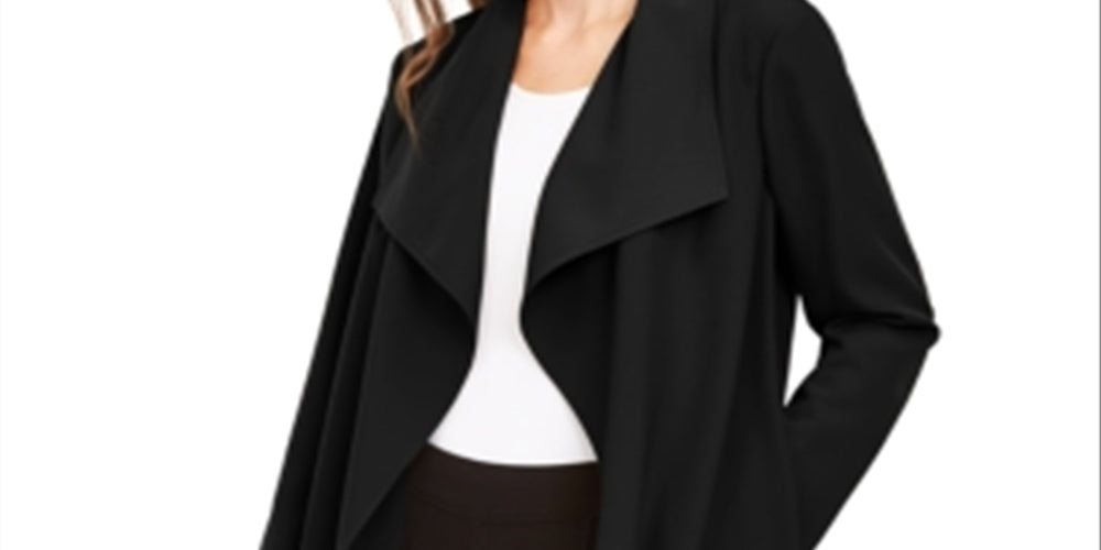 Alfani Women's Wing Collar Draped Front Jacket Black Size Petite Medium