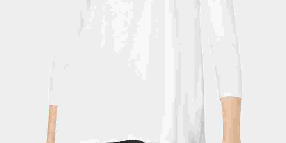 Scoop neckline|Mixed-media design with woven back|3/4-sleeves|Hits at hip