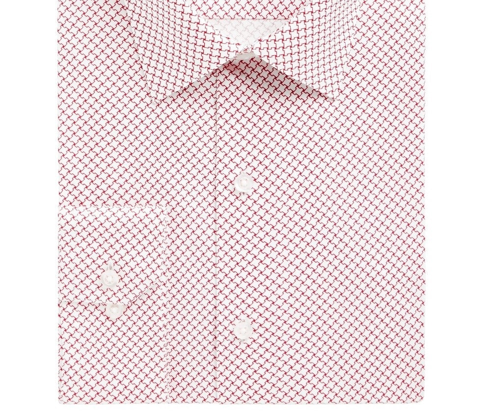 A slim fit is cut closer through the chest, sleeves and waist; features slim armholes and sleeves|Wicking fabric helps evaporate moisture|Wrinkle resistant fabric requires little ironing|Stretch spread collar|Cotton/nylon/spandex
