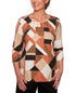 Alfred Dunner Women's Tunics Geometric Embellished Top Brown Size Petite L