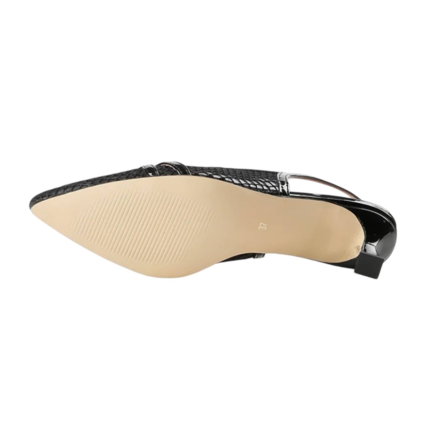 Don't be deceived, these heels are comfy as can be. Step into elegance with the Women's Sling Back Kitten Heel by ALL BLACK, a stunning choice for any occasion. Featuring a sophisticated pointed toe and classic sling back design, these heels are crafted with a chic mesh upper and a comfortable pig skin insole. The durable rubber outsole ensures stability with every step. Perfectly tailored for the modern woman, these kitten heels are a must-have addition to your collection.