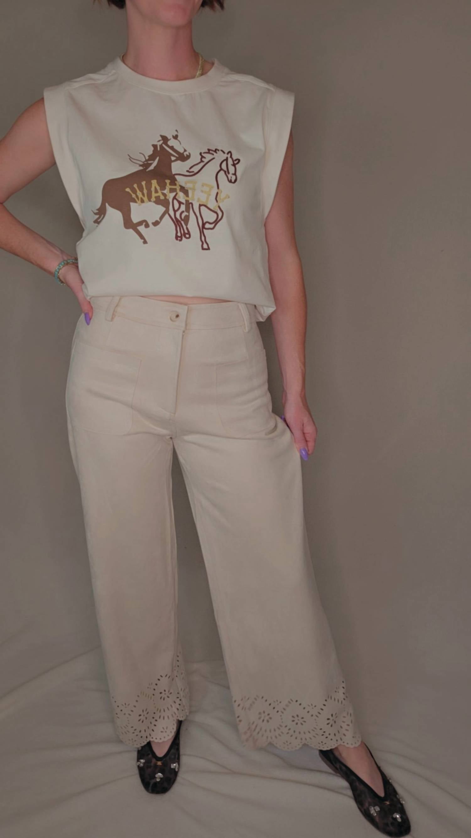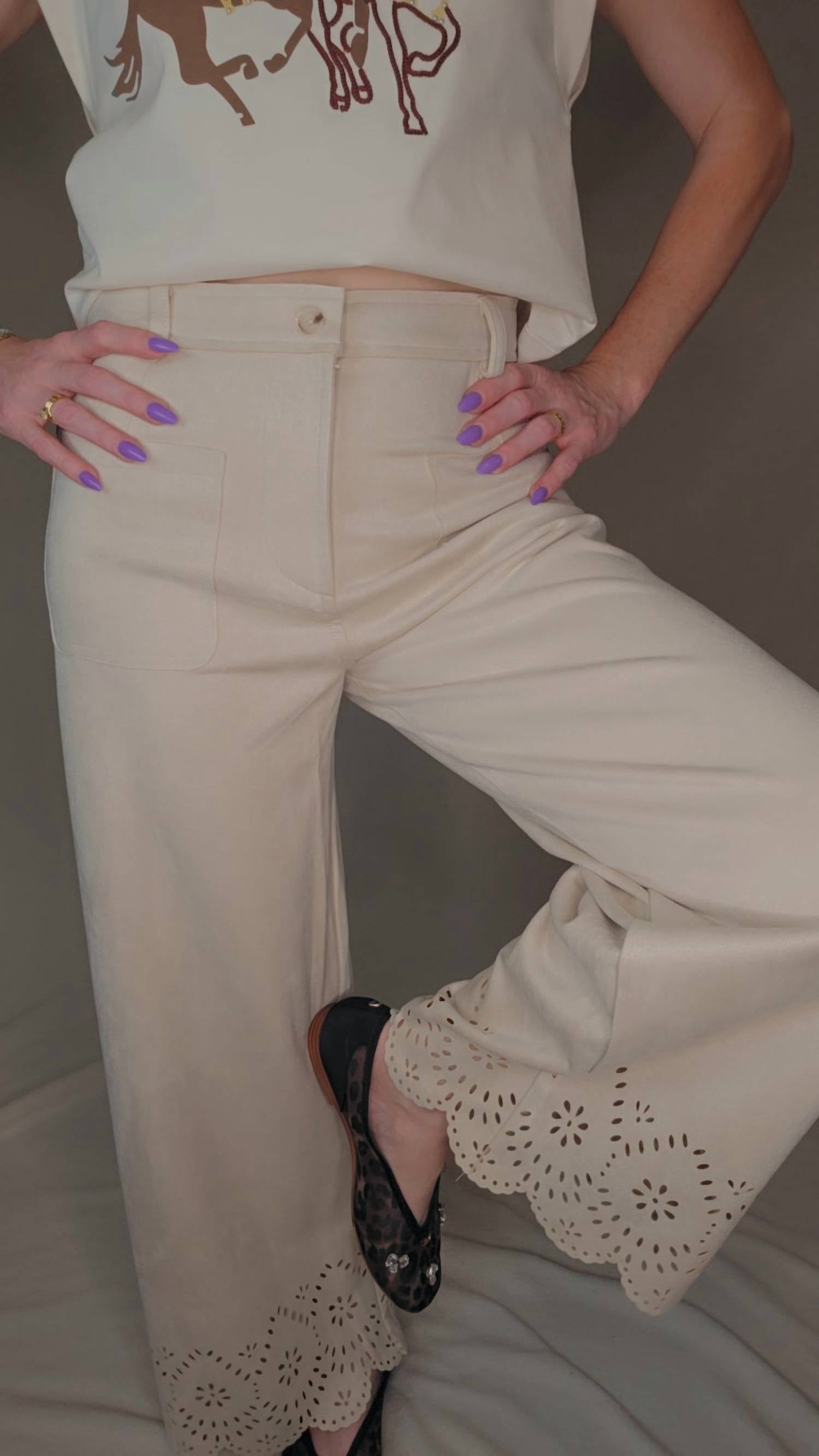 Allie Rose - Suede Laser Cut Wide Leg Pants