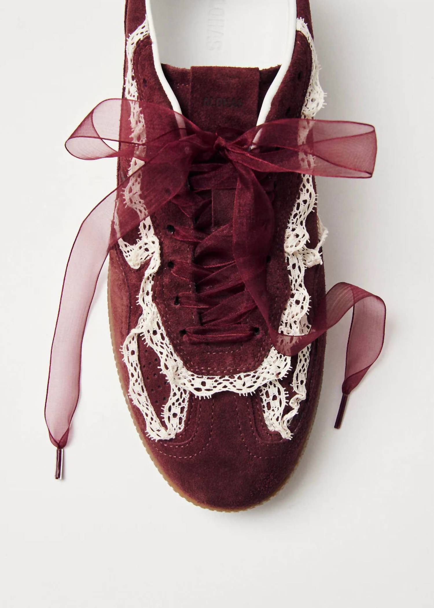 When fashion and function come together seamlessly. Step out in style with the Women's Crochet Leather Sneakers by ALOHAS, crafted in rich burgundy sustainable leather. These sneakers feature a comfortable flat heel height of 0.8 inches and a round toe shape, combining elegance with everyday practicality. Made in Portugal with a composition of 100% cow leather for the upper, lining, and insole, along with a 100% rubber outsole and 100% cotton embellishments. Perfect for adding a touch of sophistication to your holiday wardrobe, celebrate Christmas with the thoughtful design originating from Barcelona.