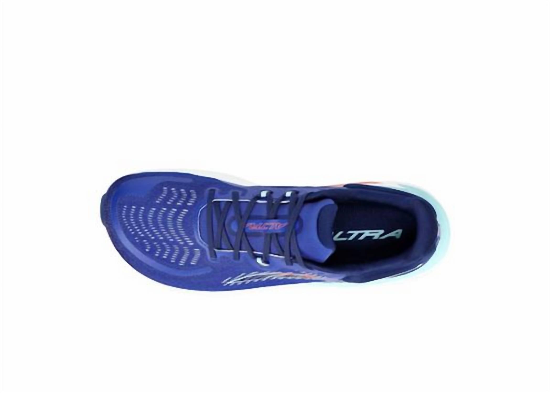 Introducing the ALTRA Men's Paradigm 7 Shoes in a vibrant blue, perfect for athleisure enthusiasts seeking a blend of style and function. Designed with an engineered mesh upper and secure ghillie lacing, these sneakers promise breathability and a snug fit. Featuring ALTRA EGO™ MAX midsole foam and a molded heel collar, they offer a responsive yet plush experience for fitness or workout occasions. Embrace natural foot positioning with the Standard FootShape™ Fit and enjoy additional support with integrated GuideRail™ technology.