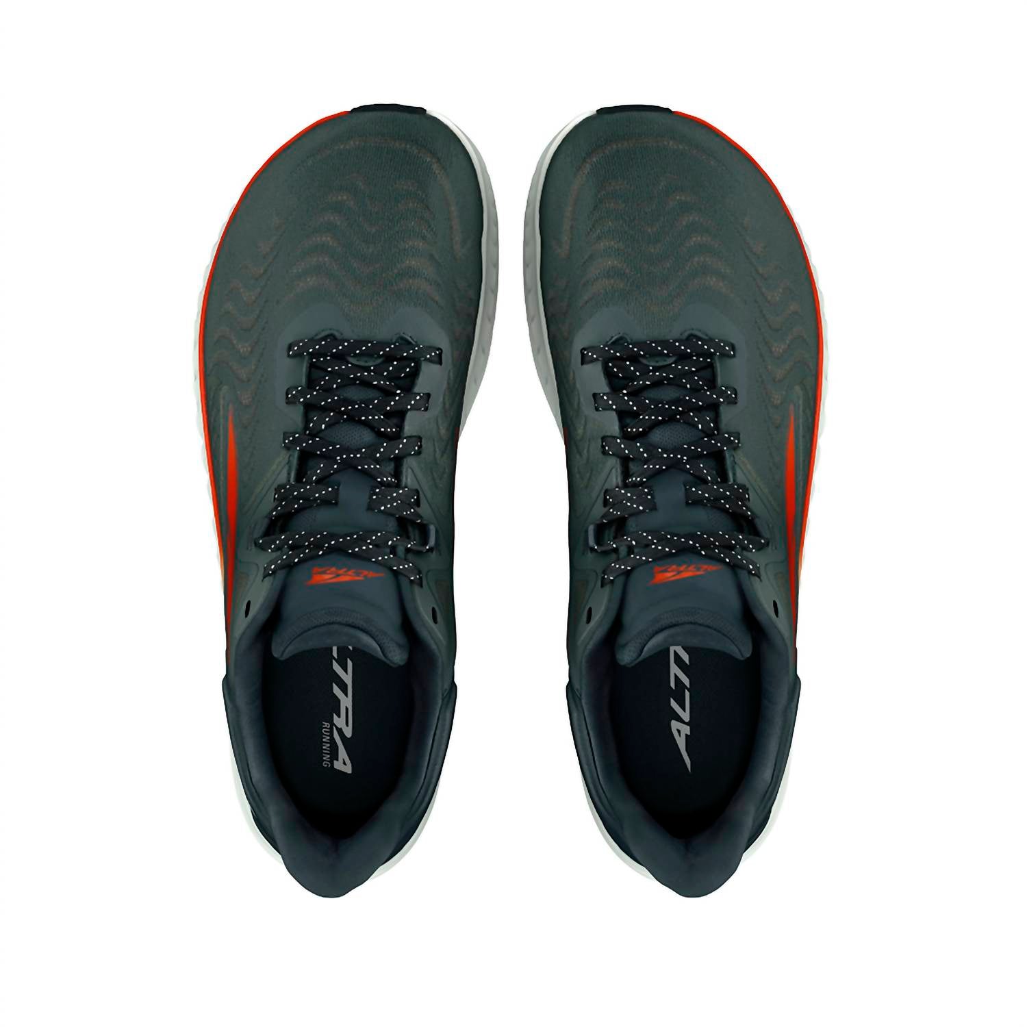 Elevate your running experience with the Men's Torin 7 Road Running Shoes by ALTRA, showcasing a sleek dark gray design. These athletic shoes feature an engineered mesh upper that ensures breathability and comfort. The Altra EGO™ MA midsole and FootPod™ outsole deliver exceptional cushioning with a max 30 mm stack height, perfect for athleisure and fitness workouts. Weighing in at 9.8 oz (278 g) and crafted to fit a standard Footshape with a round toe, these shoes offer a balanced blend of performance and style.