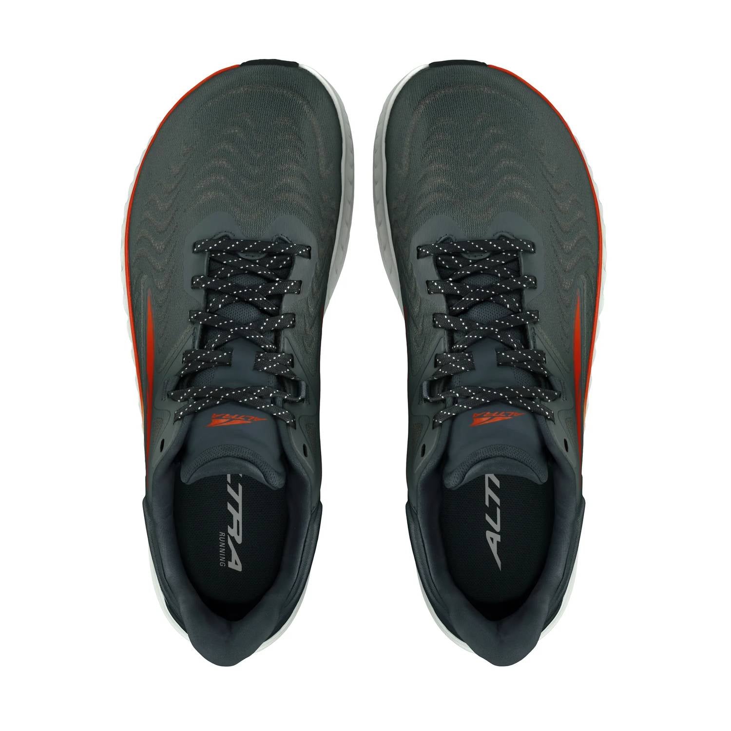 Introducing the Men's Torin 7 Running Shoes by ALTRA, perfect for road running with a high cushion and neutral support. These athletic shoes feature a dark gray engineered mesh upper for optimal comfort and breathability, complemented by an evolved molded heel collar for a secure fit. Experience enhanced performance with the Altra EGO™ MAX midsole offering a plush feel and two extra millimeters of foam, achieving a 0mm heel-to-toe drop and a 30mm stack height. Ideal for fitness enthusiasts, these shoes ensure natural movement with a standard foot shape and a round toe design, weighing in at 9.8 oz (278 g).