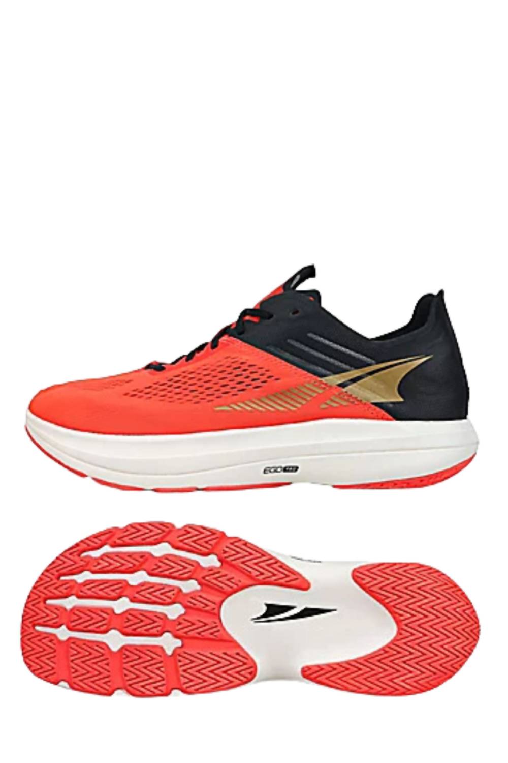 High-cushioned shoe is lightweight and designed with a carbon fiber half-plate. Altra EGO™ PRO midsole foam. Breathable upper. Heel to toe Drop 0mm. Ground contact EVA outsole. Weight 206 g. Stack Height 33mm. Neutral.