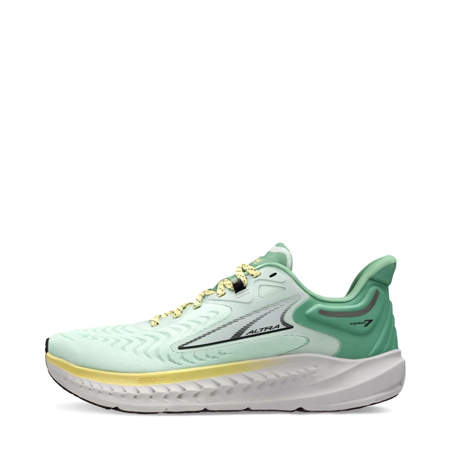 When fashion and function come together seamlessly. Experience peak performance with the Women's Torin 7 Running Sneaker by ALTRA in a refreshing Mint hue. Constructed with an engineered mesh upper, this sneaker delivers supreme comfort and breathability. The shoe features a high-cushion Altra EGO™ MAX midsole, with a FootPod™ outsole for optimal support, and balanced cushioning to enhance your natural stride. With a flat, low heel height of 1.18 inches and a round toe design, these sneakers are perfect for conquering any road or distance.