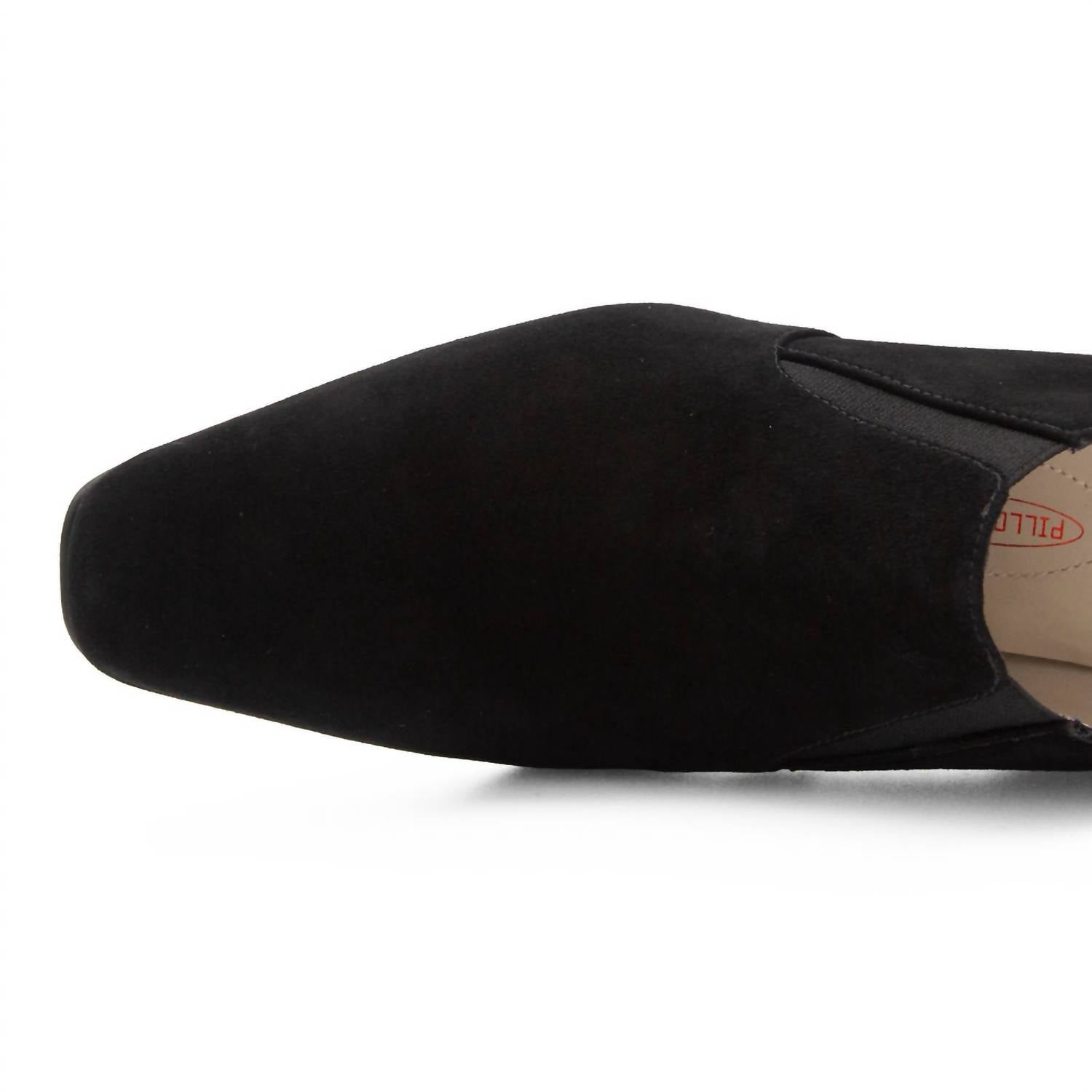 The perfect height for day to night. Step out in style with the Women's Fanello Heel Bootie by Amalfi by Rangoni, crafted from premium black suede for a chic and sophisticated look. Featuring a block heel and a pointed toe, these booties are perfect for workwear and evening events alike. With a heel height of 2.5 inches, they offer just the right amount of lift for comfort and elegance. Ideal for the spring season, these booties seamlessly blend fashion and function.
