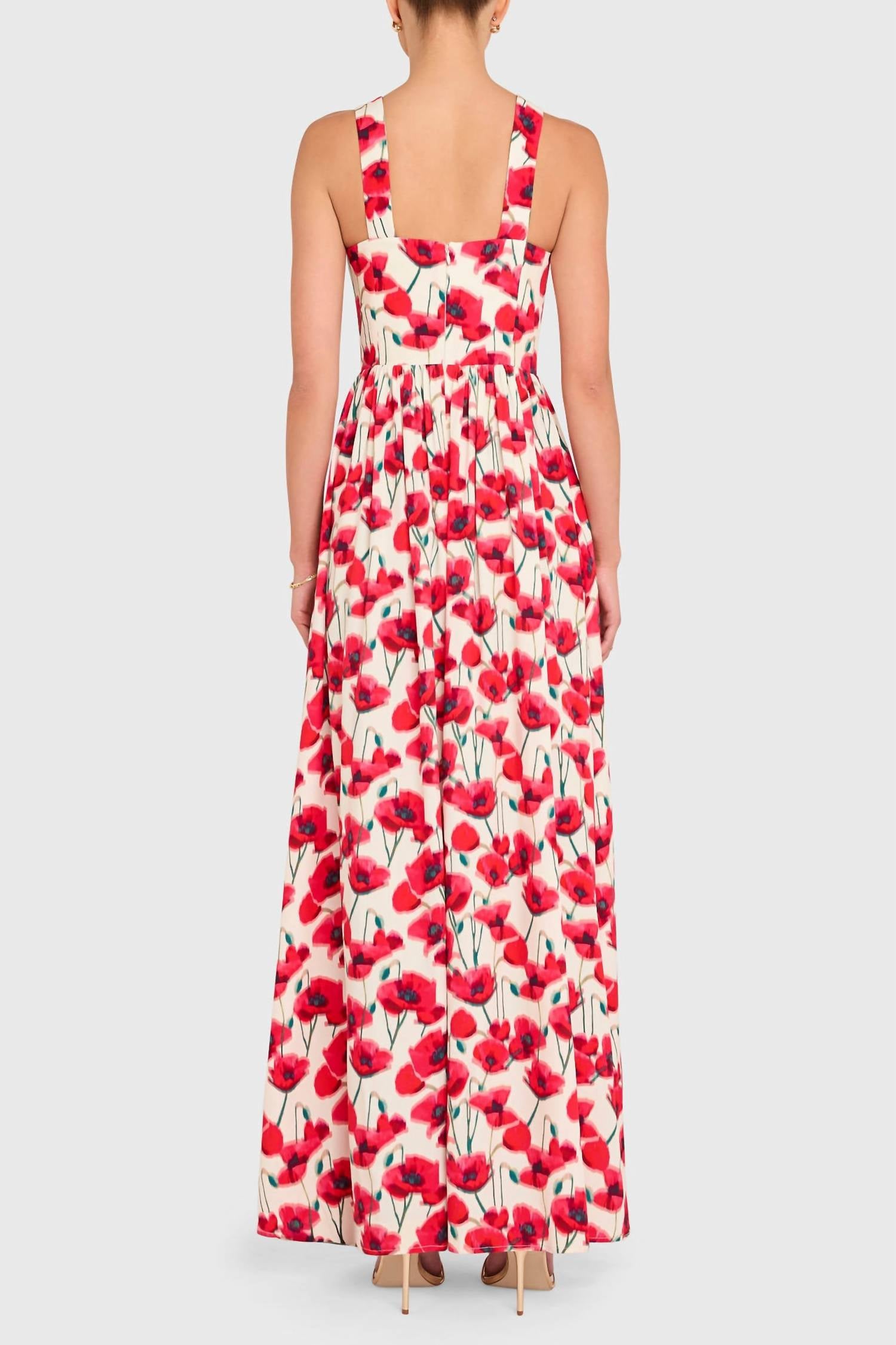 Style this maxi with your favorite statement necklace and sandals for the perfect look. Introducing the Florence Maxi Dress by Amanda Uprichard in the vibrant Poppy Field floral pattern. This sleeveless dress, ideal for spring occasions, features a square neckline, fitted bodice, and a high slit in a loose skirt, creating a captivating flow. Made from 100% Rayon and equipped with a zip closure, this A-line silhouette embraces a preppy style. Origin unknown, the dress requires dry clean care to maintain its pristine condition.