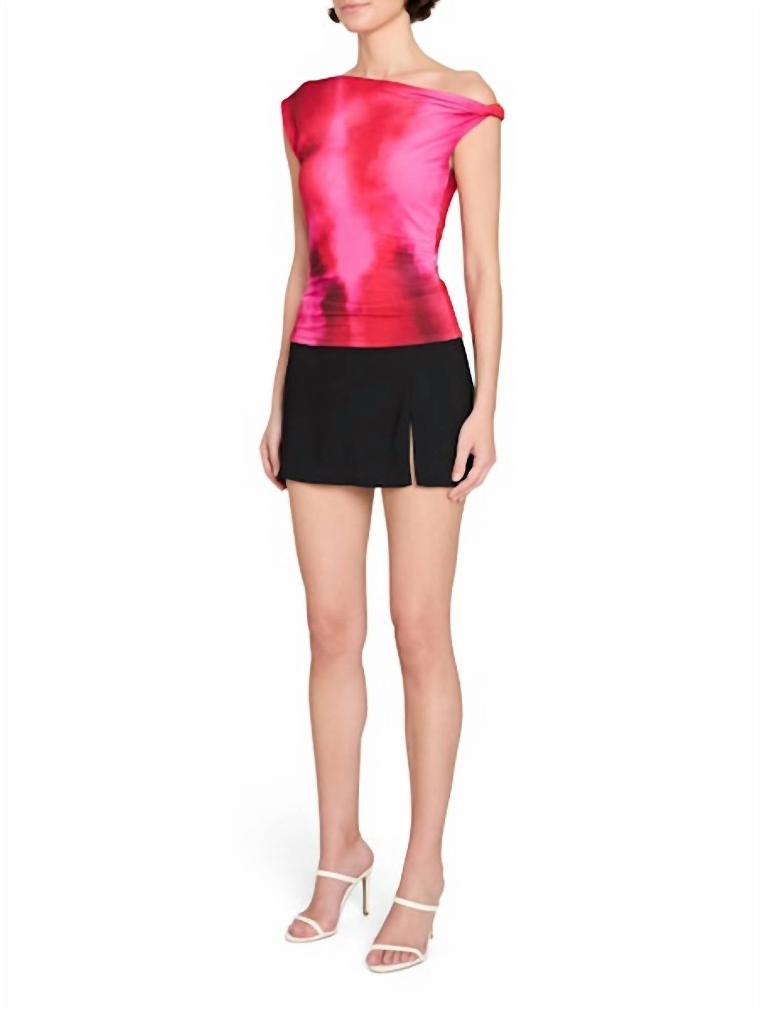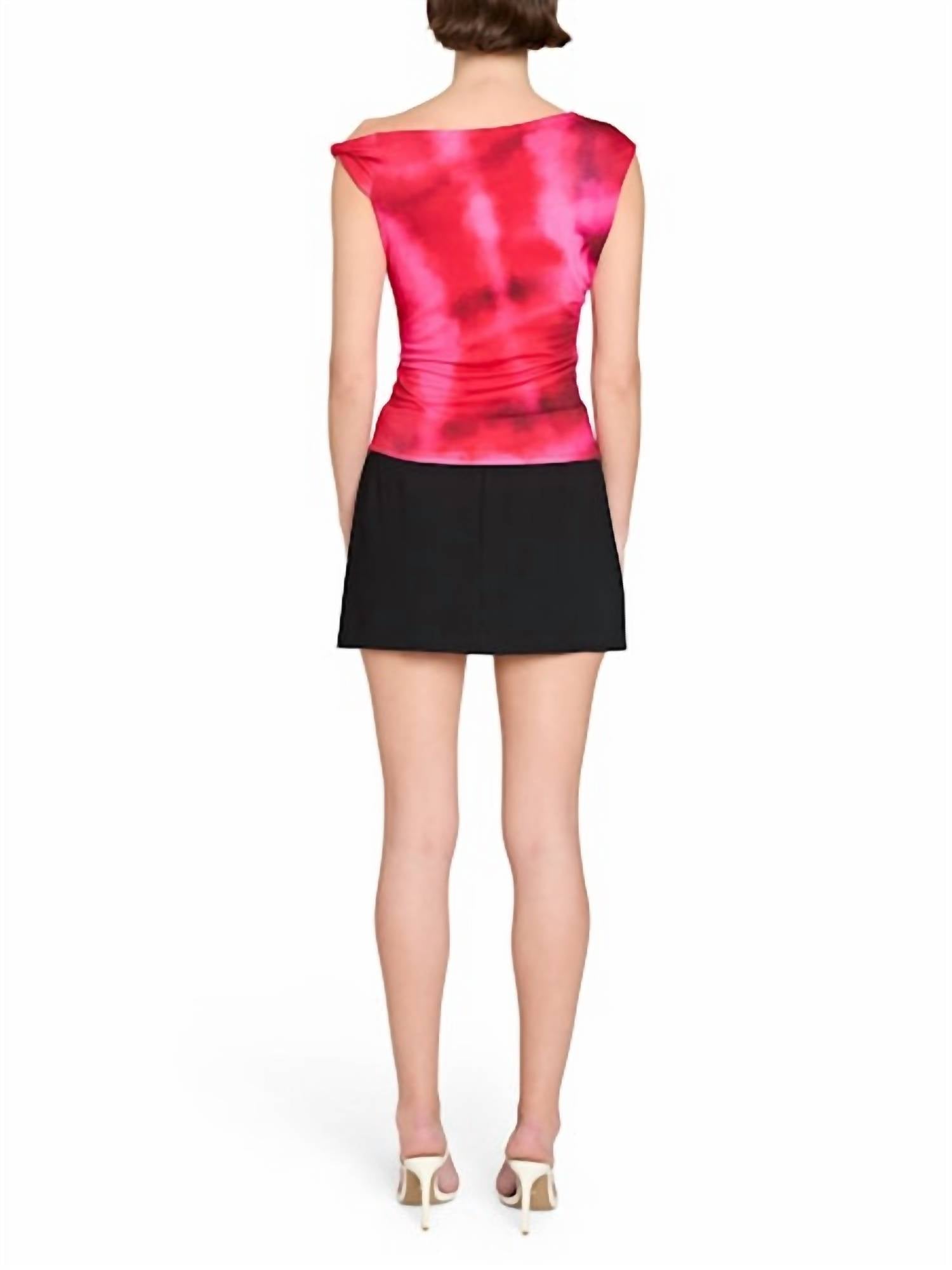 Wear this over your favorite sports bra for a more stylish and sporty look. Elevate your wardrobe with the Jennan Top by Amanda Uprichard, featuring a sleeveless, off-the-shoulder design in a captivating abyss print. Crafted from a luxurious blend of 95% rayon and 5% elastane, this top offers both comfort and style for any summer occasion. The pull-on closure and asymmetrical ruching, paired with twisted sleeve details, add a unique flair to the boho chic trend. Care for this piece with ease: hand wash and line dry.