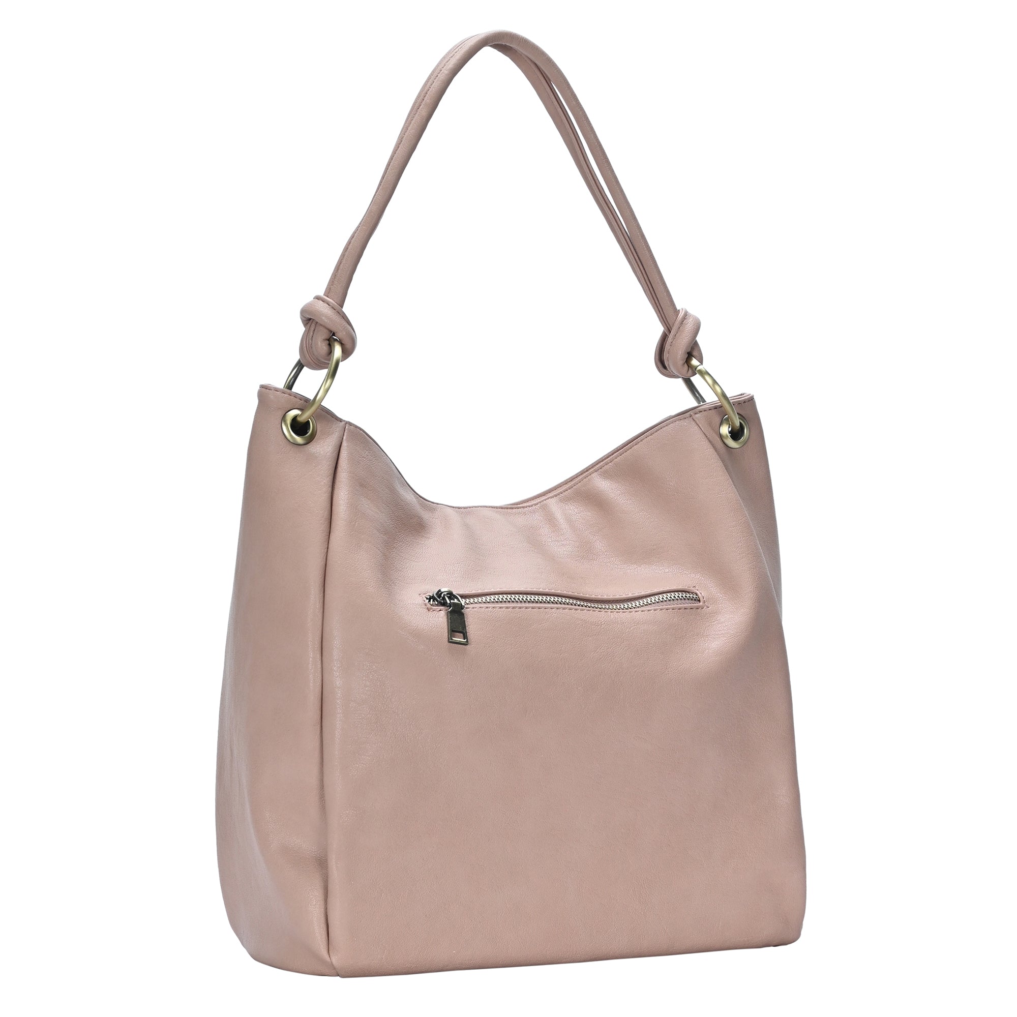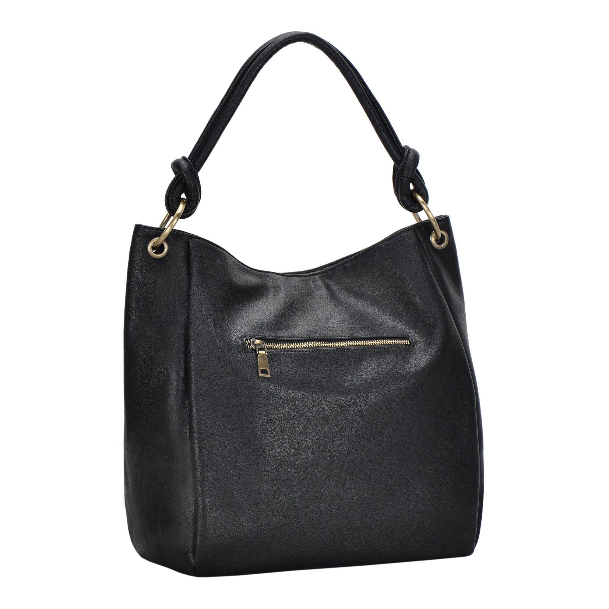 Experience the perfect blend of style and practicality with the Amara hobo! This minimalistic piece boasts chic knot details on the handles, and is perfect to fit a tablet up to 10". Plus, it comes with a handy back zip pocket for your phone and keys—while the main compartment offers ample storage! secured with a zipper.