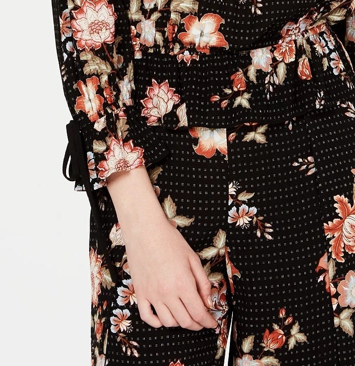 Relaxed fit; hits at waist|Elasticized off-the-shoulder neckline with self ties|Popover-style ruffle at neckline; elasticized waist|Long sleeves with self ties and ruffle cuffs|Polyester