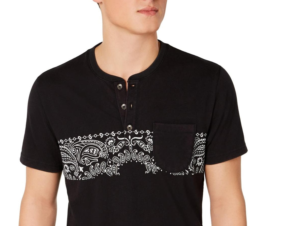 American Rag Men's Print Short Sleeve Henley Shirt Black Size Small