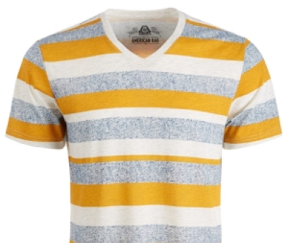 American Rag Men's Striped V Neck T-Shirt Yellow Size Medium