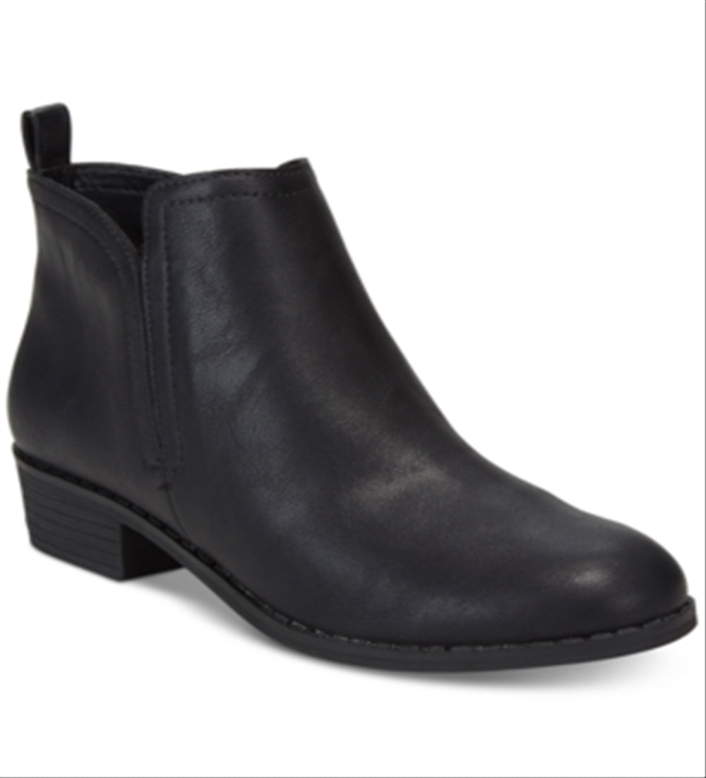 American Rag adds smooth lines to the Cadee booties with a curving notch to one side balanced by a quick side zipper on the other.| 1-1/2 block heel| Round-toe booties with a full side zipper; notche at side of topline| | Manmade or suede upper; manmade sole| Imported
