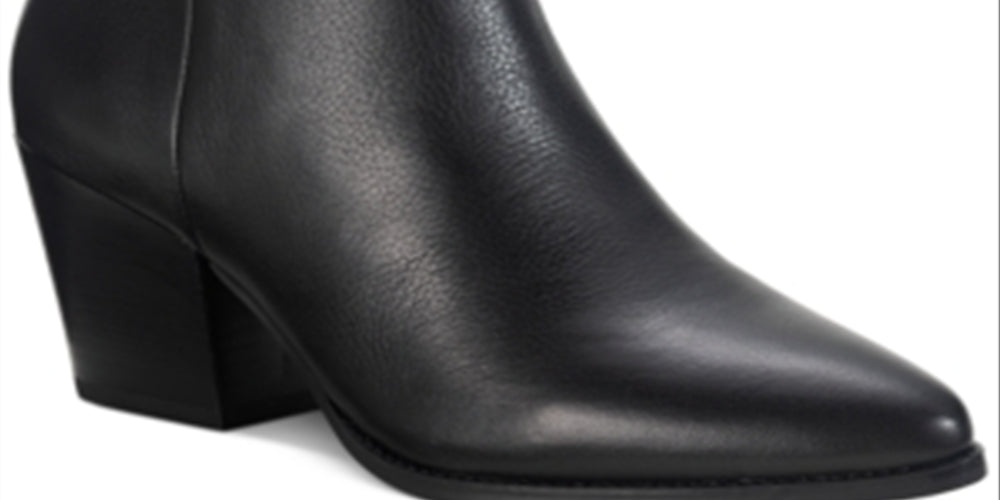 American Rag Women's Cushioned Comfort Eryn Pointed Toe Block Heel Zip up Leather Booties Black Size 9.5 M