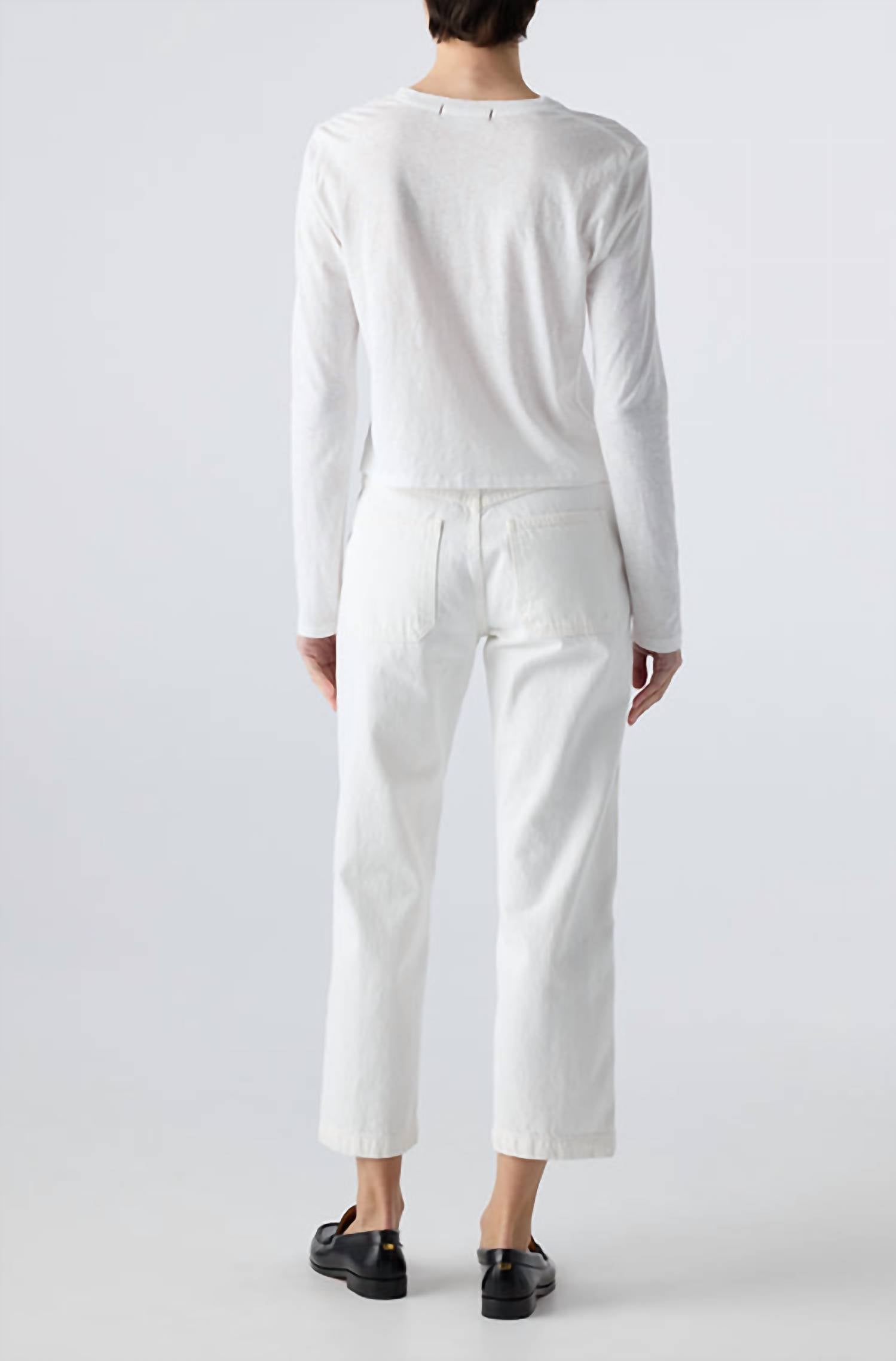 This straightleg pant is both stylish and comfortable. Did we mention the fit is perfection? Introducing the Billie Field Pants by AMO in a sophisticated eggshell shade, crafted for women with a minimalist aesthetic. These mid-rise pants boast a relaxed fit with a straight leg, made entirely from 100% cotton for ultimate comfort. Featuring a slightly tapered and rolled leg with pockets, they're ideal for casual summer outings and Thanksgiving get-togethers. The pants include a button closure, a front rise of 10.75", inseam of 26.5", and are machine washable, all meticulously made in Los Angeles.