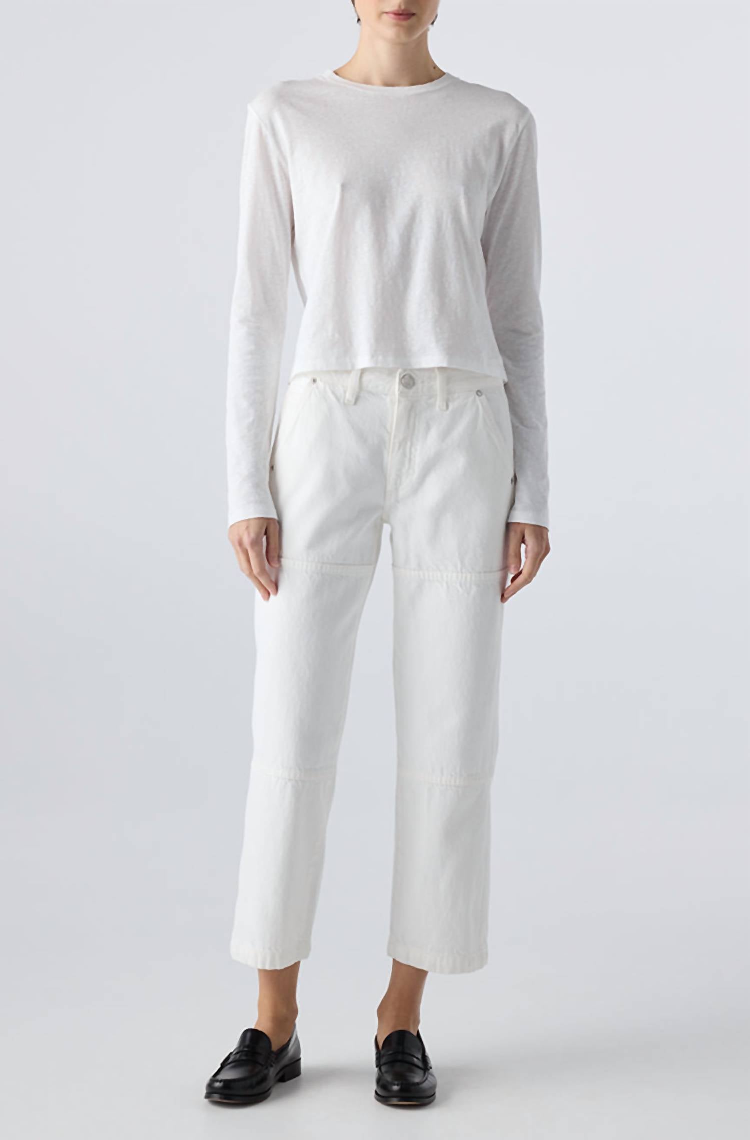 This straightleg pant is both stylish and comfortable. Did we mention the fit is perfection? Introducing the Billie Field Pants by AMO in a sophisticated eggshell shade, crafted for women with a minimalist aesthetic. These mid-rise pants boast a relaxed fit with a straight leg, made entirely from 100% cotton for ultimate comfort. Featuring a slightly tapered and rolled leg with pockets, they're ideal for casual summer outings and Thanksgiving get-togethers. The pants include a button closure, a front rise of 10.75", inseam of 26.5", and are machine washable, all meticulously made in Los Angeles.