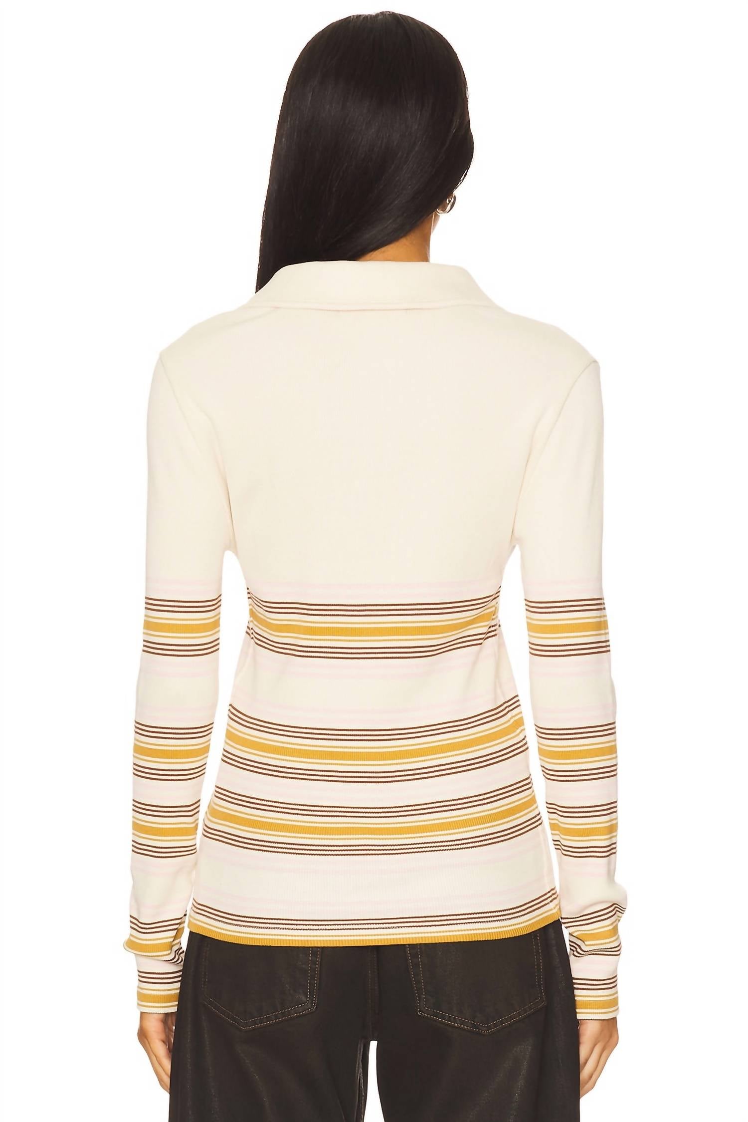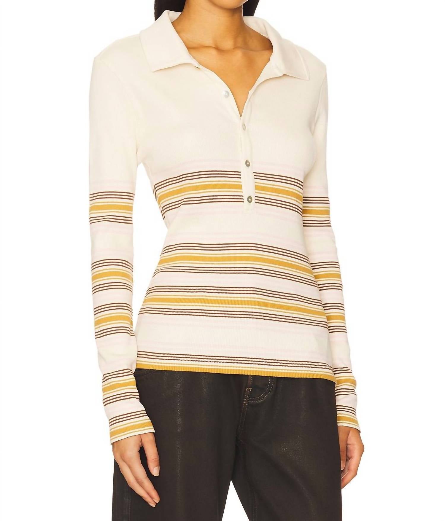 A long sleeve top you can wear with denim, skirts, well... just about anything! The Desiree Tee offers a perfect blend of comfort and effortless style. Crafted from 100% cotton in a midweight ribbed jersey fabric, this top features a front partial Mother-of-Pearl button closure that adds a refined touch. Ideal for everyday wear, it combines softness, texture, and timeless appeal in one versatile piece.