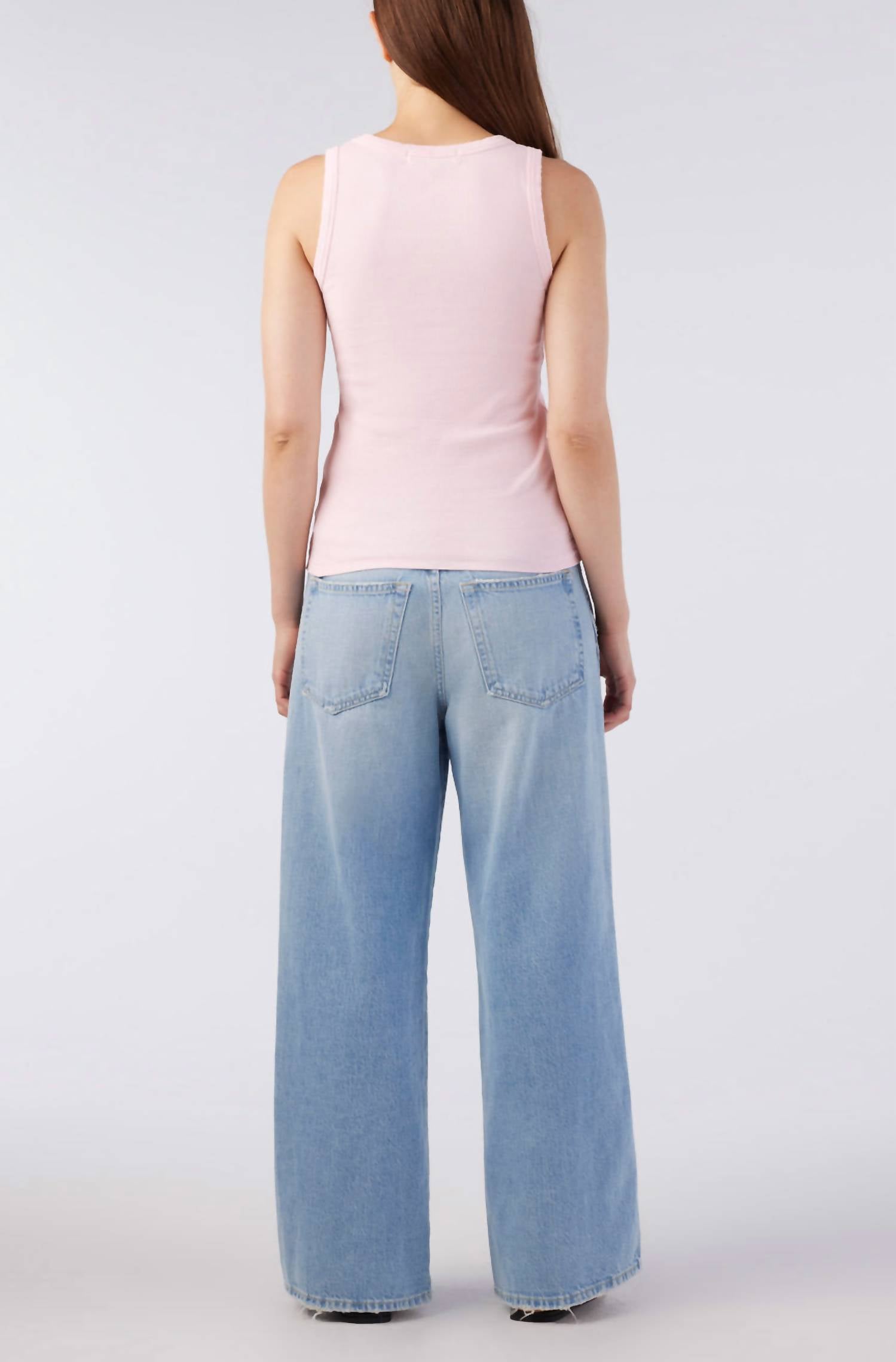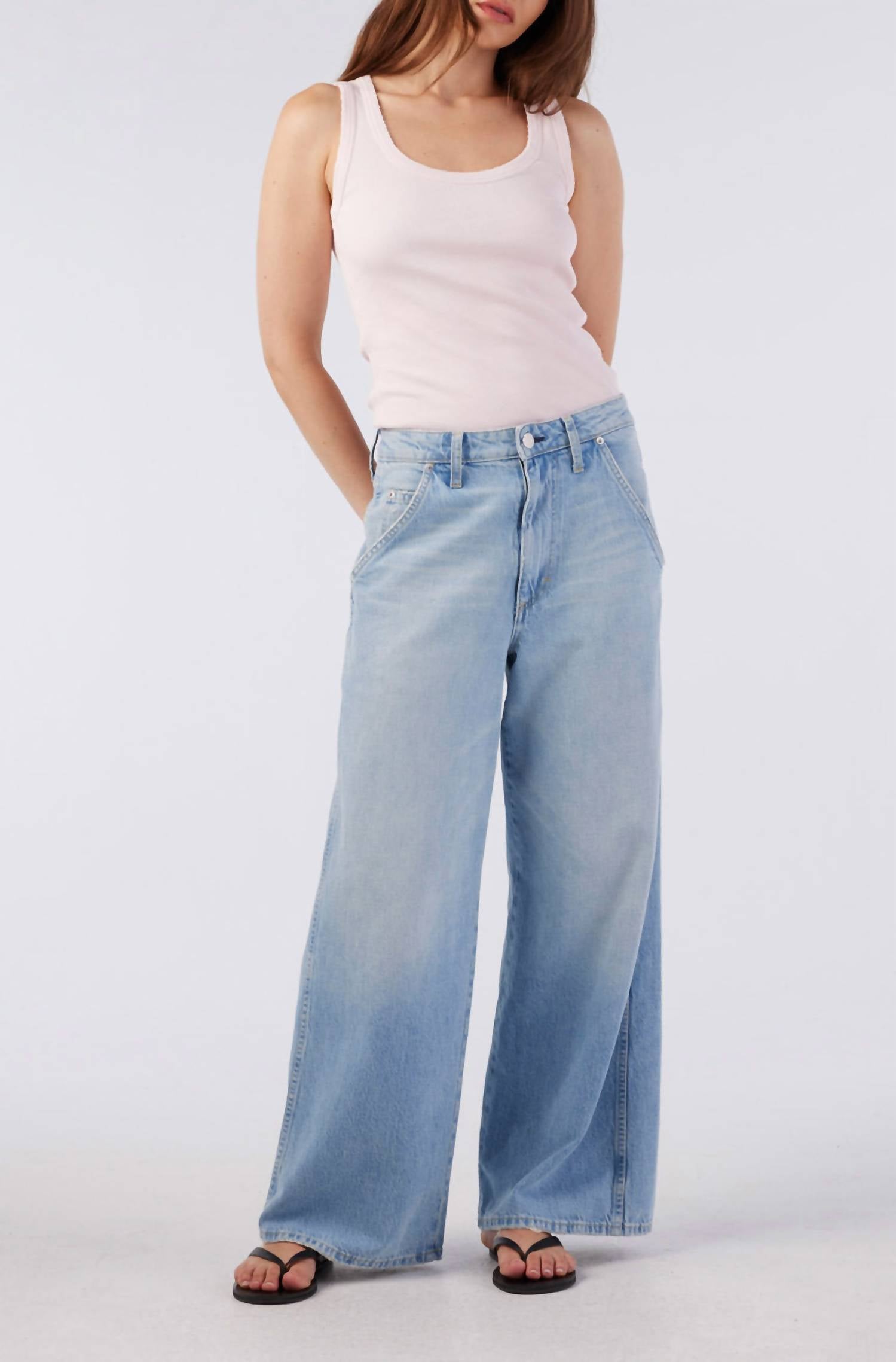 Pair these wide leg jeans with mules, slides or your favorite strappy sandals. Discover the Isabel Denim Jean by AMO, crafted for effortless streetwear style in a relaxed fit. These medium-wash blue jeans are intentionally oversized with a mid-rise and a wide leg, featuring a comfortable 88% cotton and 12% hemp blend. They come equipped with practical pockets and a classic button closure. Made in the States, these jeans are easy to care for with machine wash and tumble dry instructions. The inseam measures 29.5". Perfect for a concert or a casual fall outing, these trousers balance menswear inspiration with femininity.