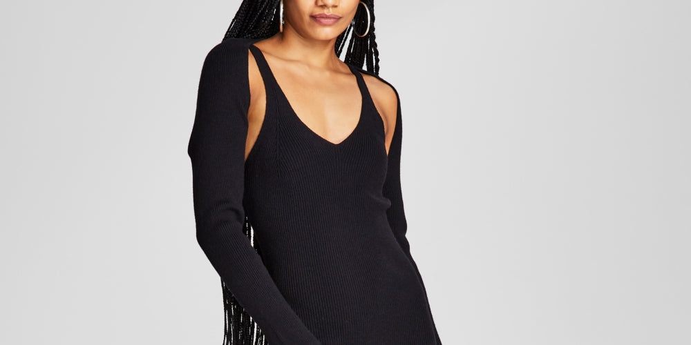 And Now This Women's Ribbed Knit Bodycon Dress & Shrug Black Size XL