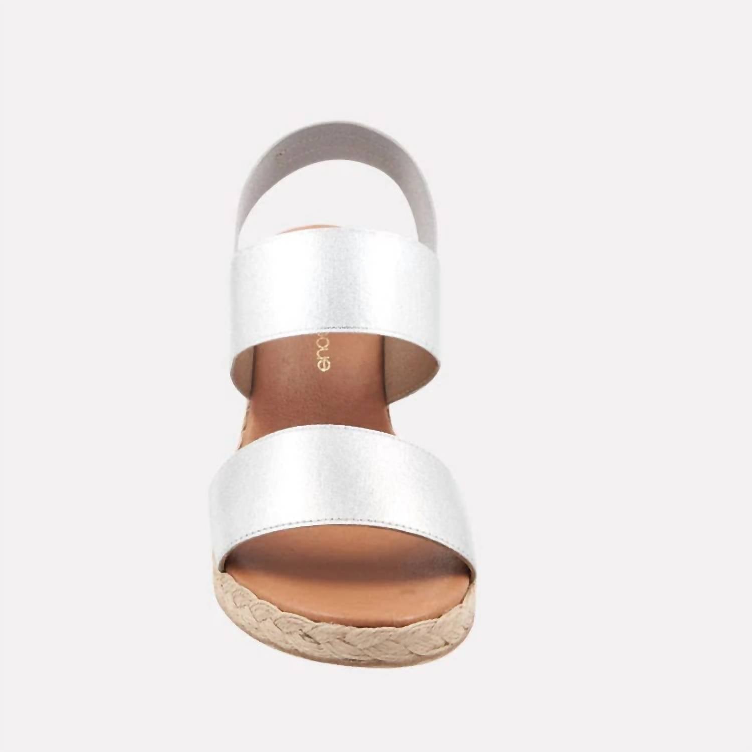Step into sophistication and comfort with the Women's Allison Espadrille Wedge Sandals from Andre Assous, crafted in elegant silver. These sandals feature a multi-strap elastic upper and a woven jute espadrille heel approximately 3 inches high, ensuring both style and stability with every step. Made in Spain, they offer an easy slip-on design with a breathable cushioned footbed and a padded leather insole for ultimate comfort. Embrace minimalist charm this spring, whether you’re attending a holiday party or celebrating Thanksgiving.