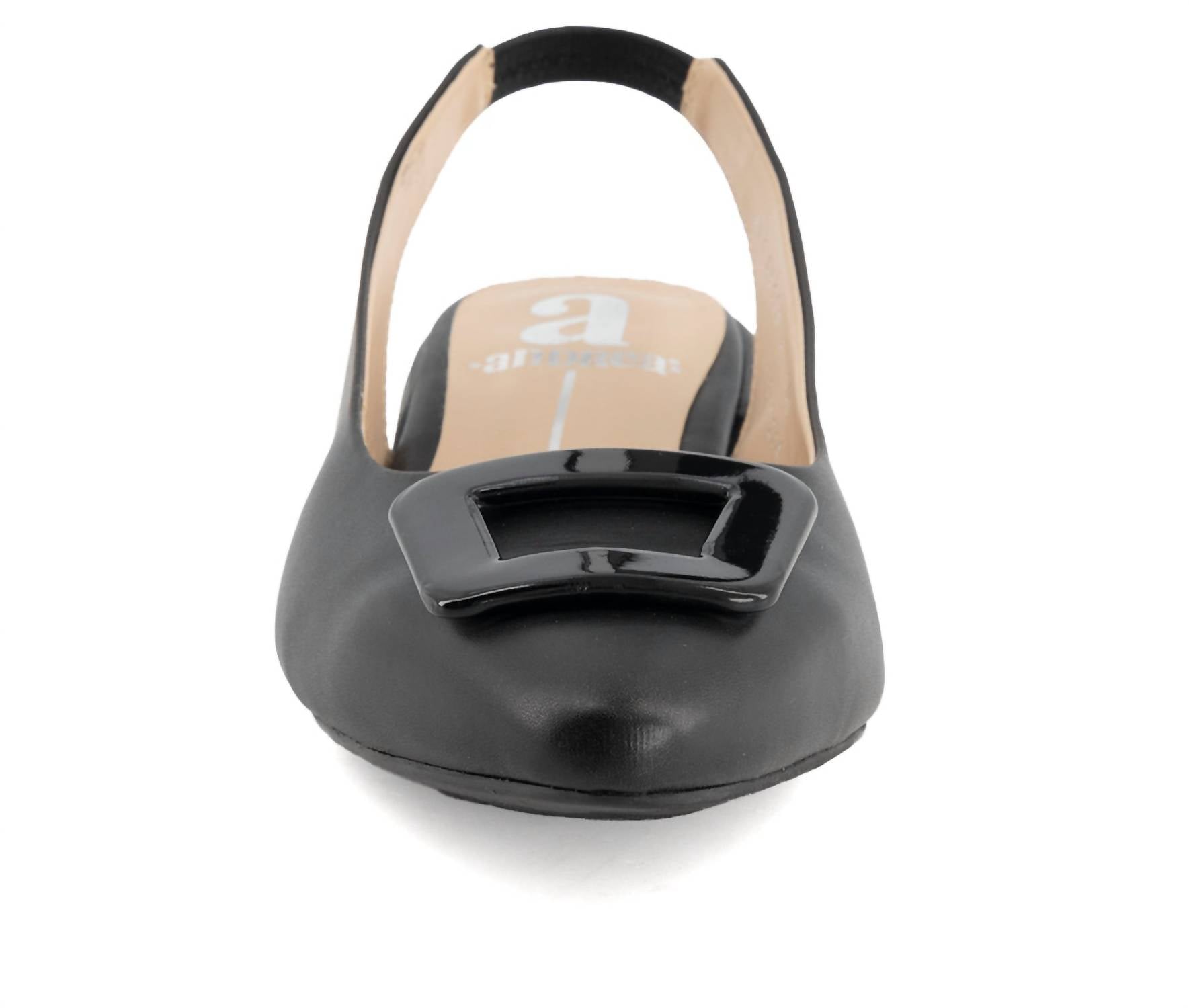 Enhance your footwear collection with the Women's Elastic Slingback Flats by Andrea, expertly crafted for style and all-day comfort. These black flats feature a nylon composition and include a pointed toe design. The elastic slingback ensures an easy fit, complemented by a block heel with a height of just 1 inch. The Comfortech foam padded insole and anti-slip outsole provide added cushioning and stability, perfect for workwear or a holiday party.