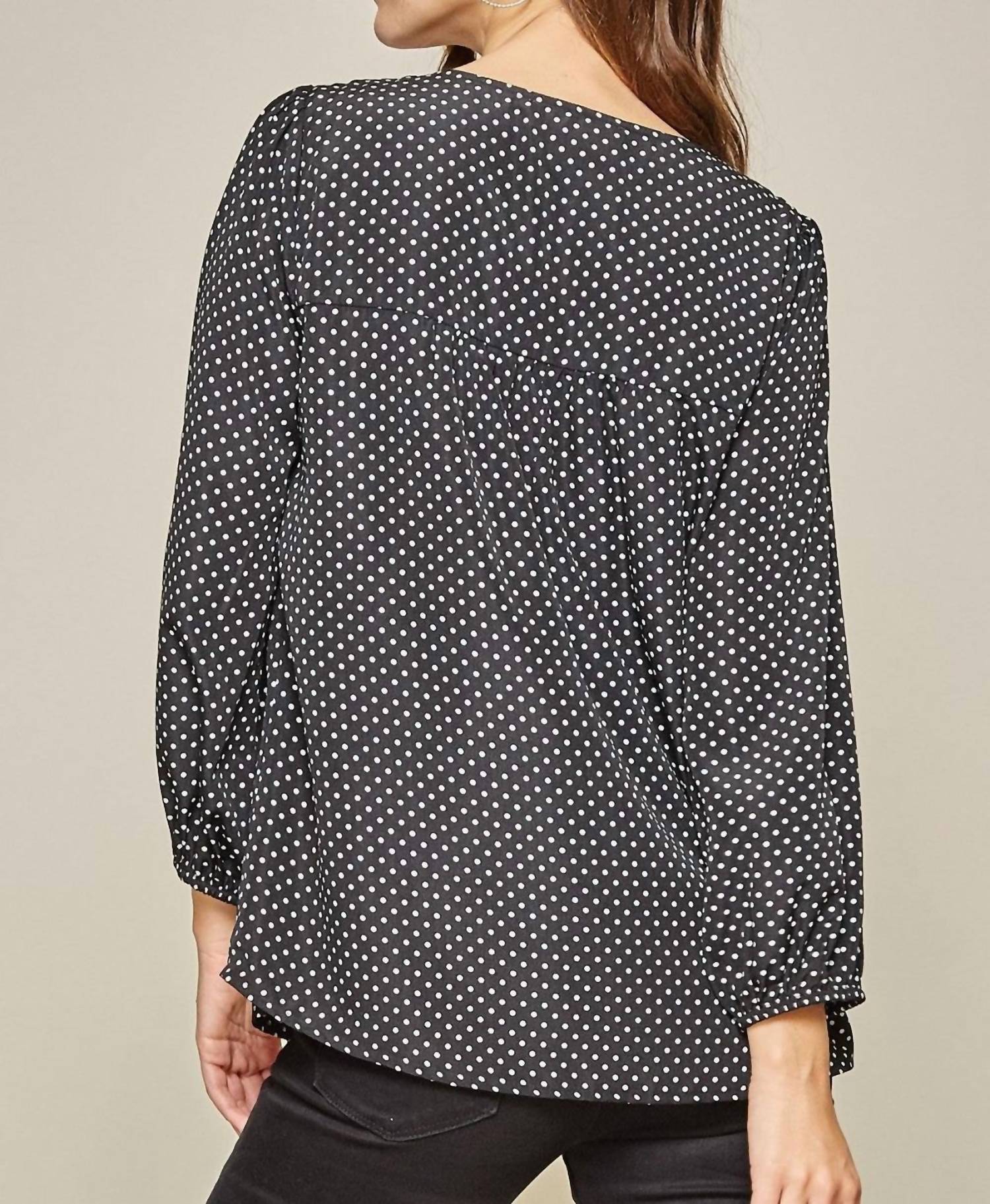 Dive into boho chic style with the Polka Dot Floral Embroidered Top by ANDREE BY UNIT, tailored for an effortlessly relaxed look in Black Multi. Crafted with long sleeves featuring elastic cuffs for comfort, this blouse is made from 100% Polyester with a contrast of 100% Cotton, ensuring a breezy, delicate finish. The garment's pull-on style offers ease and simplicity, making it perfect for pairing with your favorite skinny jeans. Care for this charming piece by hand washing in cold water. Available in various sizes: Small Bust 38" L 25", Medium Bust 40" L 25", Large Bust 42" L 25", with extended sizes 1X Bust 48" L 28", 2X Bust 50" L 28", and 3X Bust 52" L 28".