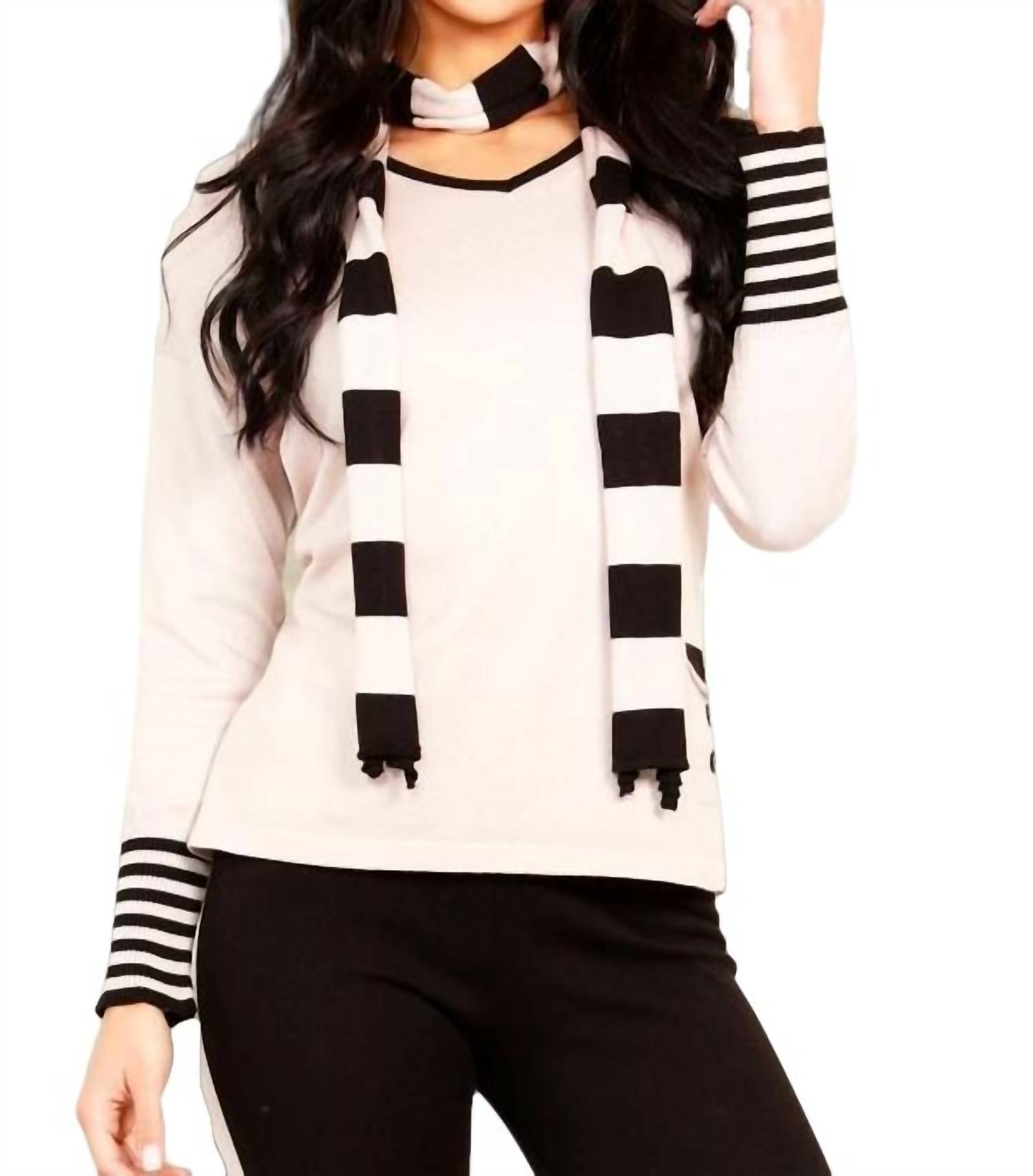 Wear this v-neck sweater with your favorite denim for the perfect fall look.Cotton/Acrylic Blend. ANGEL sweater. Stripe Detail. V-Neck. Long Sleeve. Hits at waist. Delicate hand wash or dry clean. Imported