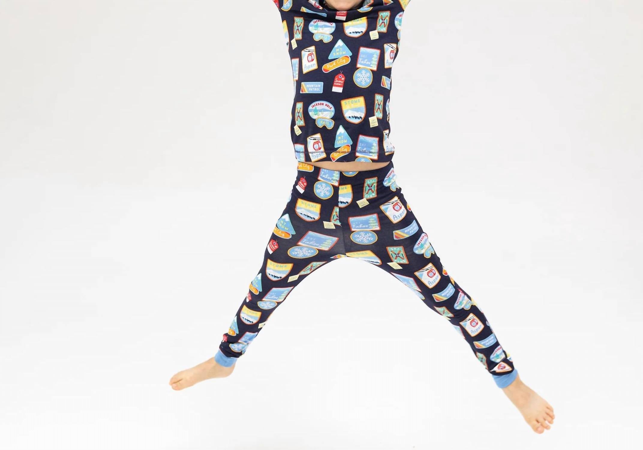 Angel Dear - Kid's Vintage Ski Patches Long Sleeve Loungewear Set