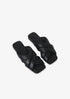 Step into casual elegance with the Women's Eve Sandals by ANINE BING, featuring a sophisticated black design highlighted by criss-cross puffy straps. Crafted from 100% goat leather, these slip-on flats offer a luxurious feel with a cushioned insole and a modern squared toe for added flair. Perfect for all-day wear, they provide a stylish upgrade to conventional sport slides. We recommend taking your true size or going up if you're between sizes.